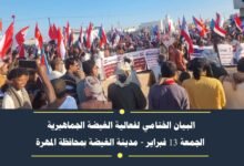 البيان الختامي الصادر عن الهيئة التنفيذية للقيادة المحلية للمجلس الانتقالي الجنوبي بالعاصمة عدن عقب المسيرات الجماهيرية الكبرى
