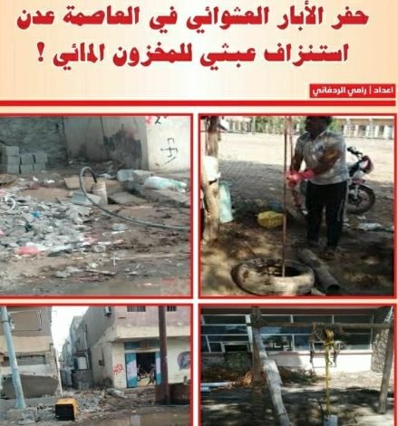صرخة وطن : حفر الأبار العشوائي في العاصمة عدن استنزاف عبثي للمخزون المائي!