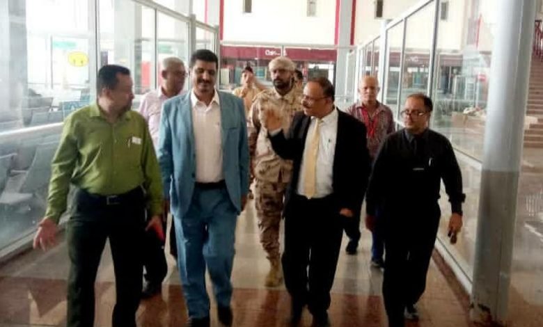 وزير النقل يتفقد ويتابع سير العمل ومستوى الاداء في مطار عدن الدولي