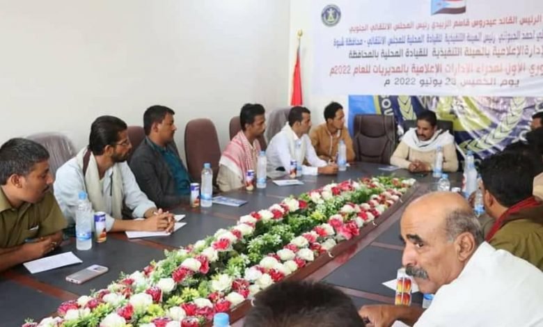 إعلامية انتقالي شبوة تعقد اللقاء التشاوري الأول لمدراء الإدارات الإعلامية بالمحافظة