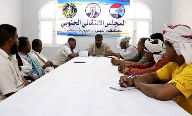 عقدت الهيئة التنفيذية للمجلس الانتقالي الجنوبي في مديرية سيحوت بمحافظة المهرة، اليوم الأحد، اجتماعها الدوري لشهر يونيو، برئاسة علي جمعان عويّض، رئيس الهيئة.