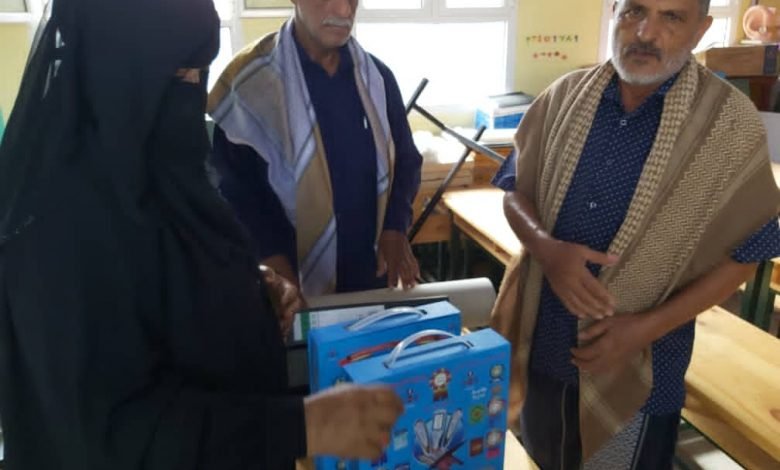 الجمعية اليافعية بخنفر تدعم مدرسة المكفوفين بجعار بأدوات مكتبية واقلام ناطقة