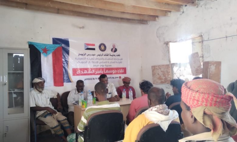 أقامت ادارة الشهداء والجرحى للهيئة التنفيذية للقيادة المحلية للمجلس الإنتقالي الجنوبي بمديرية بروم ميفع صباح اليوم لقاءا باسر الشهداء للاطلاع على مشاكلهم وهمومهم بمقر المجلس .