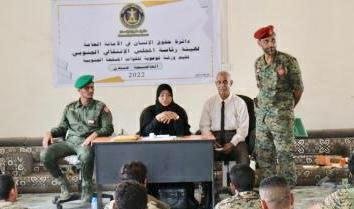 حقوقية أمانة الانتقالي تقيم ورشة توعوية لأفراد الحزام الأمني في قطاع المنصورة