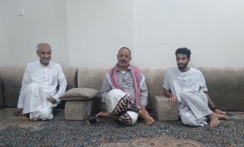 قيادة الهبة تطمئن على صحة الجريح البطل بندر أحمد سلامة الكثيري في منزله بالمكلا