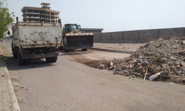 استمرار حملة رفع المخلفات في الشارع الرئيسي والخلفي لطريق ساحل ابين بخورمكسر