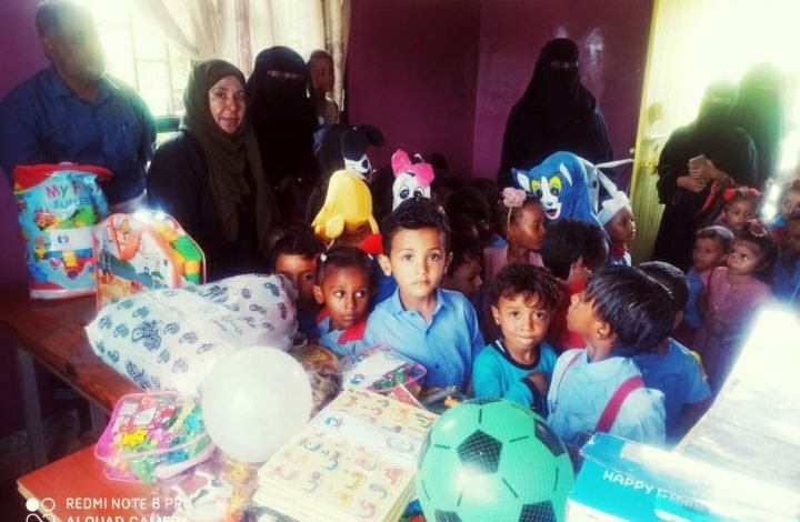 أبين.. جمعية البركة تقدم ألعاب وأدوات رسم لروضة أول مايو بمدينة الكود