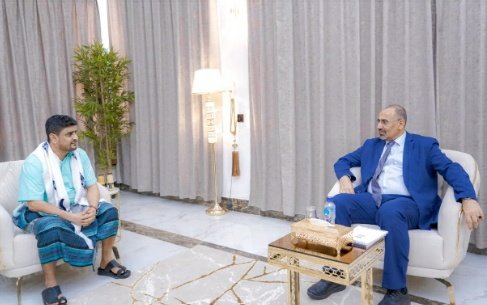 الرئيس الزُبيدي يلتقي العميد أبو مشعل الكازمي وعددا من القيادات الأمنية بمحافظة أبين