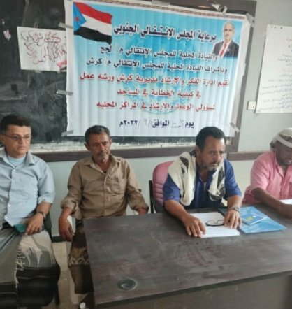 ورشة عمل لعدد من مسؤولي الوعظ والإرشاد بالمراكز المحلية لانتقالي مديرية كرش