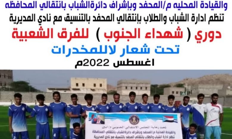 وذلك ضمن مباريات دوري شهداء الجنوب الذي تنظمه ادارة الشباب بانتقالي المحفد