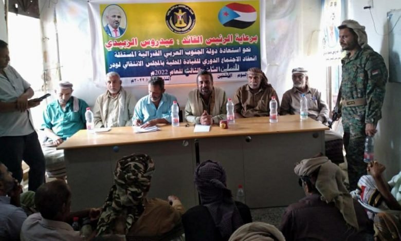 عقدت القيادة المحلية للمجلس الانتقالي الجنوبي بمديرية لودر في محافظة أبين، الاثنين اجتماعها الموسع للفصل الثالث لعام 2022، برئاسة سالم عمر مسود رئيس الهيئة التنفيذية.