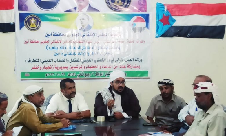 إدارة الفكر والإرشاد بانتقالي ابين تقيم ورشة عمل حول الخطاب الديني المعتدل والخطاب الديني المتطرف