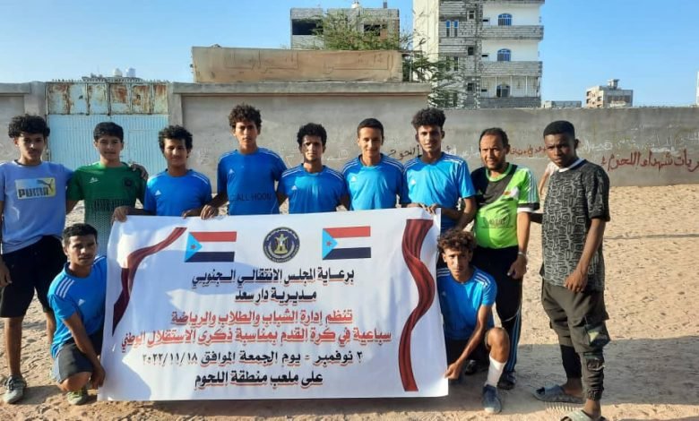 نظمت إدارة الشباب والطلاب في الهيئة التنفيذية للقيادة المحلية للمجلس الانتقالي الجنوبي في مديرية دارسعد، اليوم الجمعة، دوري سباعي لكرة القدم على كأس الذكرى الـ 55 لعيد الاستقلال الوطني الـ 30 من نوفمبر المجيد.