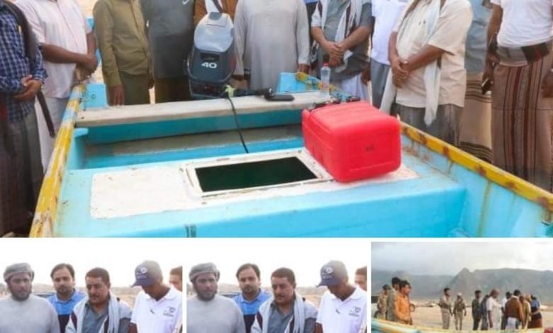 محافظ سقطرى يسلم أسرة الشهيد طاهر علي قارب صيد مع محركها.