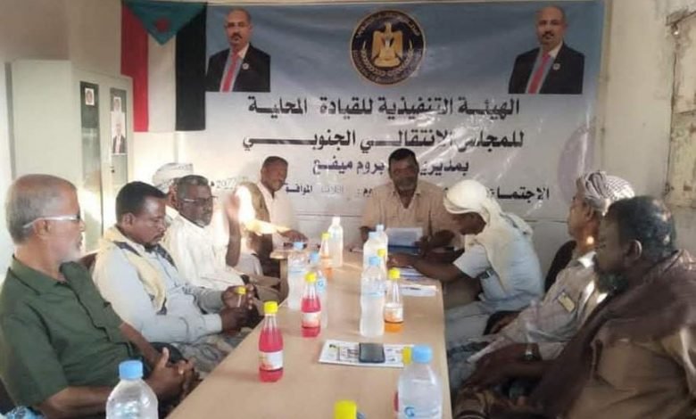 عقدت الهيئة التنفيذية للقيادة المحلية للمجلس الانتقالي الجنوبي بمديرية بروم ميفع ، بمحافظة حضرموت، مساءيوم الثلاثاء ، في مقرها بميفع ، اجتماعها الدوري الثاني لشهر نوفمبر، برئاسة الأستاذ ناصر سالمين التميمي رئيس الهيئة التنفيذية بالمديرية..