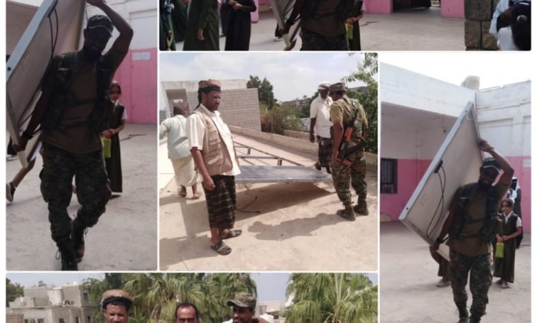 الحزام الامني في أبين يستعيد مسروقات لمدرسة الخنساء بجعار