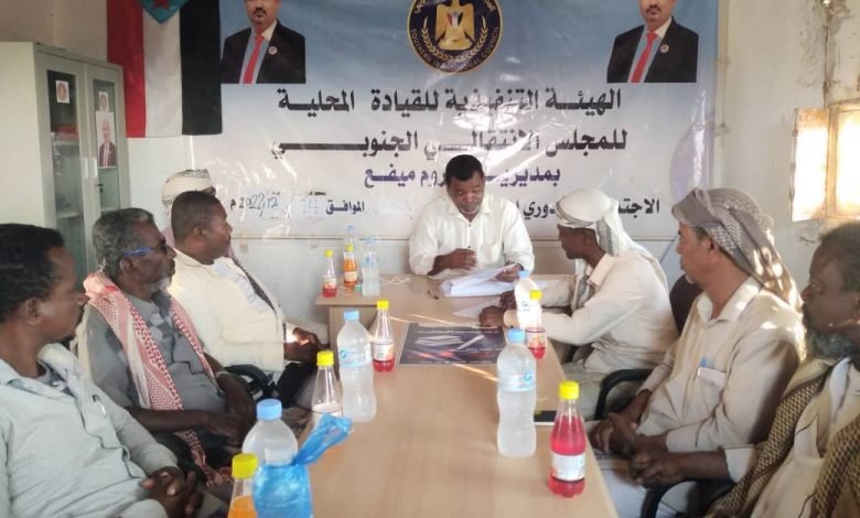 عقدت الهيئة التنفيذية للقيادة المحلية للمجلس الانتقالي الجنوبي بمديرية بروم ميفع ، بمحافظة حضرموت، مساء