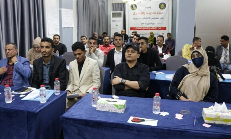 اختتم مركز التدريب والتأهيل في المجلس الانتقالي الجنوبي، اليوم الخميس في العاصمة عدن، الدورة التدريبية التي نظمها في ” فن الالقاء والاتصال الفعال” والتي أقيمت خلال الفترة 11-15 ديسمبر 2022م، بمشاركة متدربين من مختلف هيئات المجلس.