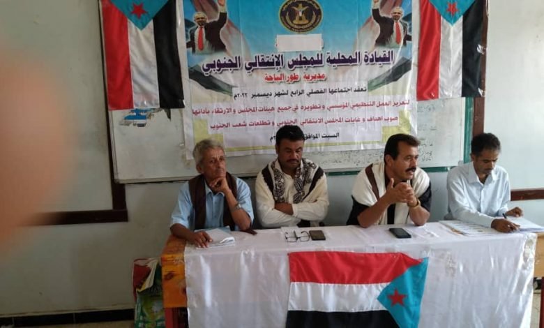 عقدت القيادة المحلية للمجلس الانتقالي الجنوبي مديرية طورالباحة صباح اليوم السبت الموافق 24 ديسمبر 2022م بمدرسة الصديق اجتماعها الفصلي الاخير برئاسة الاخ منصور الصماتي رئيس الهيئة التنفيذية للقيادة المحلية للمجلس الانتقالي الجنوبي بالمديرية ،وحضور عدد من اعضاء المجلس الانتقالي بالمحافظه،،