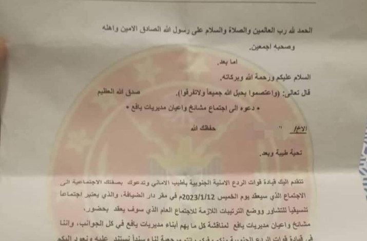 ودعت الأهالي الى عدم التعاطي مع دعوات تجنيد الشباب التي تقوم بها الجهه المذكورة وعدم الانجرار خلفها.