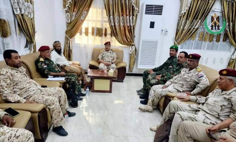 زار اللواء صالح علي حسن قائد العمليات المشتركة اليوم مقر القيادة العامة لقوات الحزام الأمني بمعسكر الشعب .
