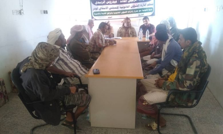 أقامت الإدارة القانونية في المجلس الانتقالي بمديرية لودر ندوة قانونية مع مدراء الشؤون القانونية بمرافق المديرية والأجهزه الأمنية، وذلك بحضور رئيس المجلس الانتقالي في لودر حسين علي القفعي.
