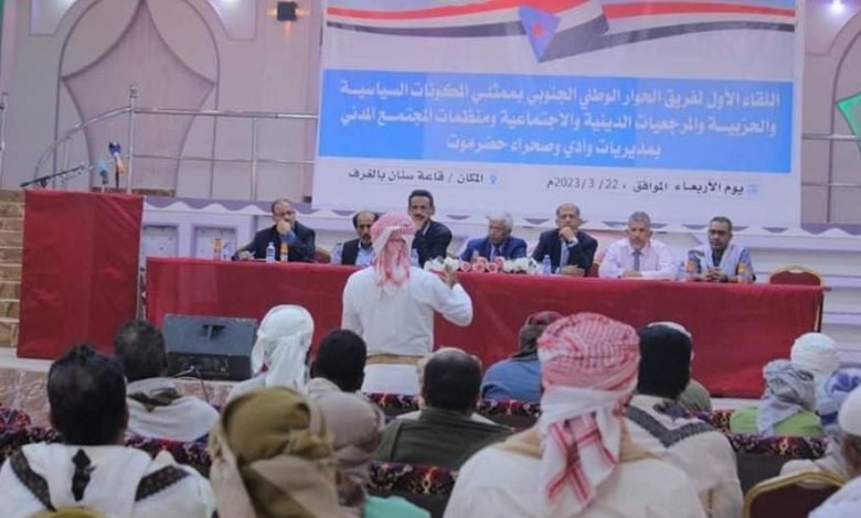 فريق الحوار الوطني الجنوبي يعقد اللقاء الأول لممثلي المكونات بوادي وصحراء حضرموت