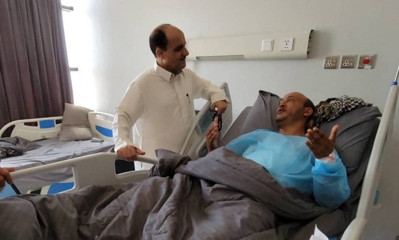 مدير عام دار سعد يطمئن على صحة رئيس عمليات وحدة حماية الأراضي بالعاصمة عدن