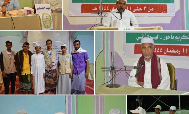 ضمن إطار الفعاليات والأمسيات الرمضانية التي ينظمها منتدى أحور الثقافي الاجتماعي الدعوي برعاية مكتب الموجه العام لأربطة التربية الإسلامية ومراكزها التعليمية والمهنية تواصلت في هذه الليلة مسابقة حفظ القرآن الكريم في يومها الثالث والتي أختصت للمتسابقين فئة السبعة أجزاء .