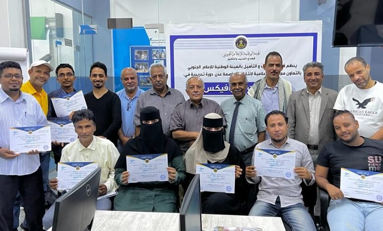 قطاع التدريب والتأهيل بهيئة الإعلام الجنوبي يختتم دورة الجرافيكس لكوادر واعلاميي انتقالي العاصمة عدن