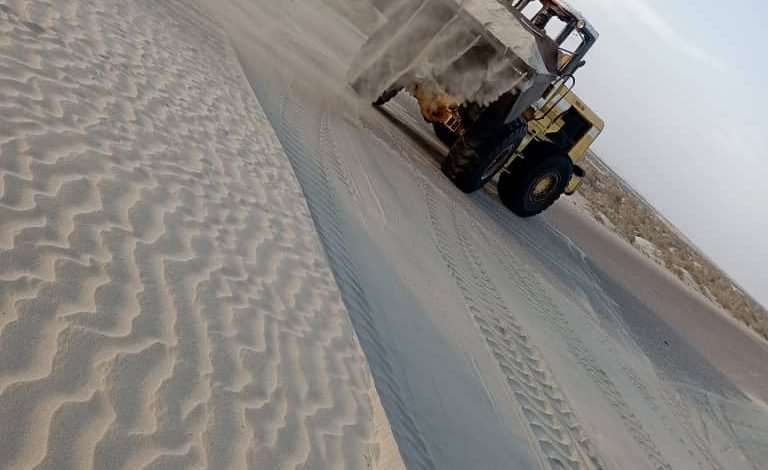 بتوجيهات من محافظ شبوة الشيخ عوض ابن الوزير، باشرت الفرق الفنية يوم الخميس عملية إزالة الرمال المتحركة في الخط الساحلي بمديرية رضوم منطقة حورة-عرقة بشبوة.