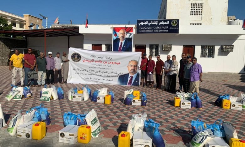 بدعم من الرئيس الزُبيدي..انتقالي صيرة يدشن عملية توزيع السلال الغذائية للأسر الأشد احتياجاً بالمديرية.