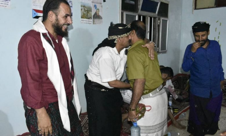 حيث كان في استقبال الأسير “العمري”عدد من قيادات السلطة المحلية،والمجلس الانتقالي،وعدد من المشائخ والشخصيات التربوية والشبابية يتقدمهم مدير التأهيل والتدريب بوزارة الشباب والرياضة رئيس نادي حالمين الأستاذ سعد العمري، ورئيس المجلس الانتقالي بالمديرية العميد ناجي الكربي،وممثل السلطة المحلية الدكتور توفيق الدغفلي،ومدير التربية والتعليم الاستاذ عبدالحكيم صالح،ومدير الأمن النقيب محمد مطلق جابر، ومدير التعليم العام الاستاذ عبدالله حمود، والدكتور شمسان صالح عبدالله، والشيخ محمد فضل جبران شيخ مشائخ قبائل العمري،والشيخ محمد فضل صالح وجمع غفير من المواطنين
