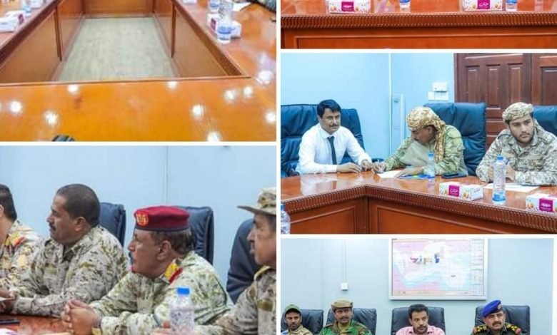 المحافظ بن الوزير يرأس اجتماع للقيادات العسكرية والأمنية وقادة ألوية دفاع شبوة.