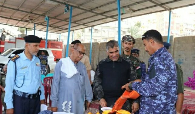 مدير الأمن والشرطة بساحل حضرموت يتسلّم معدات وأدوات مقدمة لمصلحة الدفاع المدني