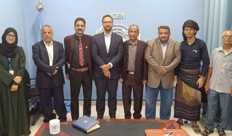 وفي مستهل اللقاء رحب المسؤول الأممي بالعميد الجبواني والوفد المرافق له معربا عن سعادته باللقاء بهم والنقاش معهم حول عدد من القضايا والمستجدات .