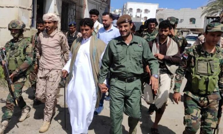 عضو هيئة الرئاسة باكريت يزور مقر قوات الحزام الامني في العاصمة عدن