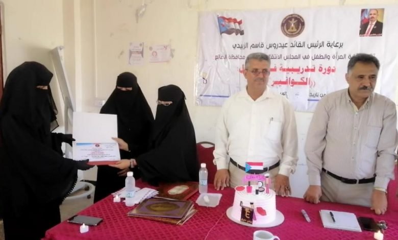 المرأة والطفل بانتقالي الضالع تختتم دورة تدريبية في مجال الكوافير