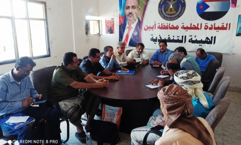 عقدت الهيئة التنفيذية للقيادة المحلية بالمجلس الانتقالي بمحافظة أبين ، اليوم الاثنين اجتماعها الدوري الثاني لشهر مايو برئاسة رئيس الهيئة التنفيذية الاستاذ محمد احمد الشقي ، وحضور نائب رئيس الهيئة الاستاذ خالد عمر العبد
