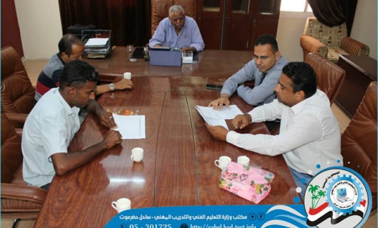 التقى صباح اليوم الدكتور سالم صلاح باجابر المدير العام لمكتب وزارة التعليم الفني والتدريب المهني بساحل حضرموت بالأستاذ مبارك ناصر بابلغيث المدير العام للخدمة المدنية والتأمنيات بساحل حضرموت وذلك لمناقشة أوضاع موظفي التعليم والتدريب المهني بساحل حضرموت .