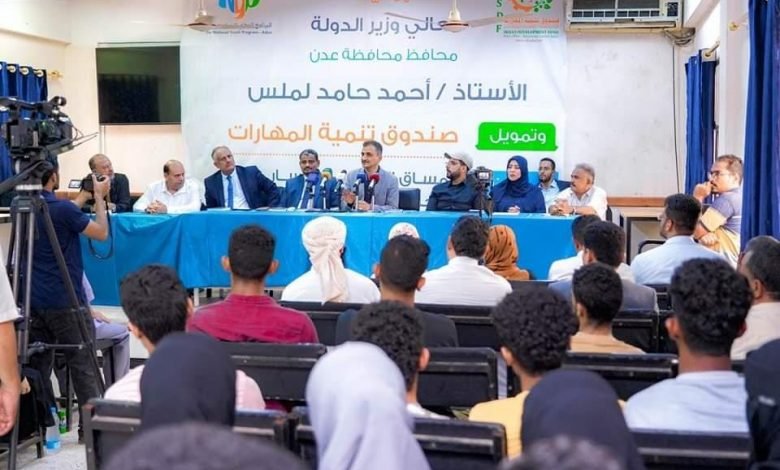 جاء ذلك، خلال تدشينه اليوم الأربعاء، المسار الثالث للبرنامج الوطني للشباب لتدريب 1000 شاب وشابة في قاعة المعهد التقني بالمعلا، بحضور نائب وزير التعليم الفني والتدريب المهني عبد ربه غانم المحولي، ووكيلي محافظة عدن رشاد شائع وعبد الرؤوف السقاف.