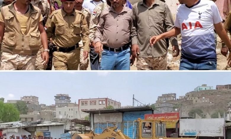 انتقالي الضالع والسلطة المحلية يشرفان على إزالة العشوائيات من شوارع المدينة
