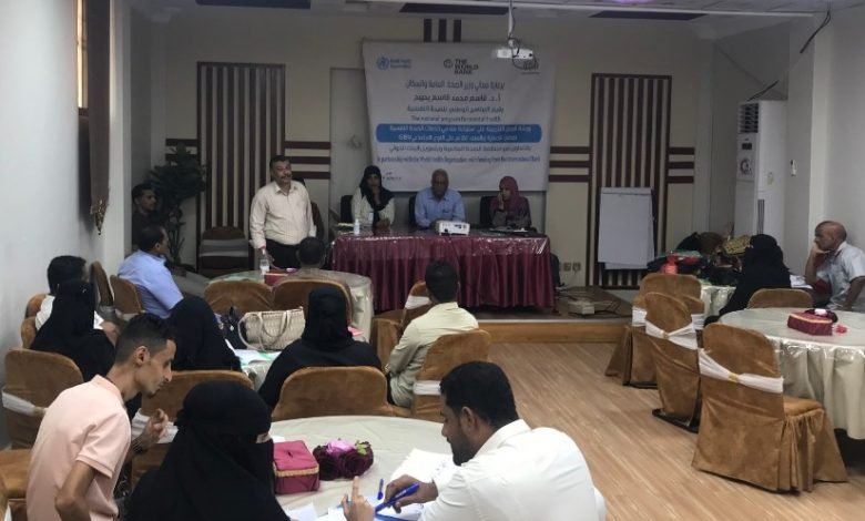 حضر تدشين الورشة د. سند حيدر ضابط المشروع في منظمة الصحة النفسية والدكتور مروان خالد منسق برنامجي الصحة النفسية والأمراض غير السارية.