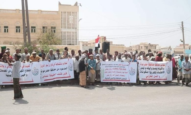 الوقفة الاحتجاجية لأبناء مديرية الشحر أمام مبنى الإدارة المحلية بالمديرية تلبية لدعوة قيادة الهبة الحضرمية بقيادة الشيخ الجابري