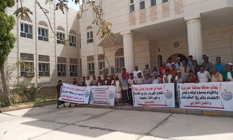 تلبية لدعوة قيادة الهبة الحضرمية بقيادة الشيخ الجابري .. الوقفة الاحتجاجية لأبناء مديرية الديس الشرقية من أمام مبنى الإدارة المحلية بالمديرية