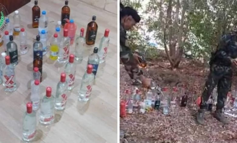 قوات الحزام الأمني تتلف كمية من الخمور المهربة بلحج