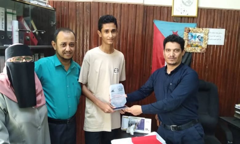 مدير عام البريقة يكرّم الطالب ” الرفاعي ” الحائز على الترتيب الأول بنتيجة الثانوية العامة بالعاصمة عدن