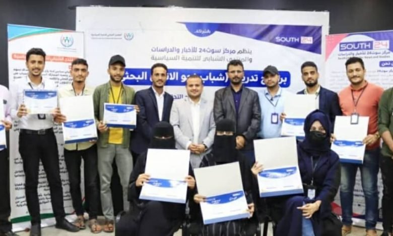 اختتم مركز سوث24 للأخبار والدراسات والمنتدى الشبابي للتنمية السياسية، اليوم الخميس، دورة “إعداد الأوراق البحثية” ضمن برنامج “شباب نحو الاتقان البحثي” في العاصمة عدن.