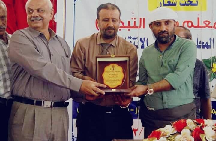 وتسلم الاستاذ عصام عبده علي ، نائب رئيس القيادة المحلية للمجلس الإنتقالي الجنوبي بالعاصمة عدن ، درع التكريم نيابة عن البروفيسور الوالي ، في حفل اقيم بالمديرية بمناسبة عيد المعلم .