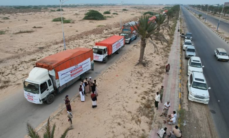 وتم تسيير أكثر من 35 شاحنة نقل تحتوي موادًا غذائية وايوائية وطبية من ساحل ووادي حضرموت.